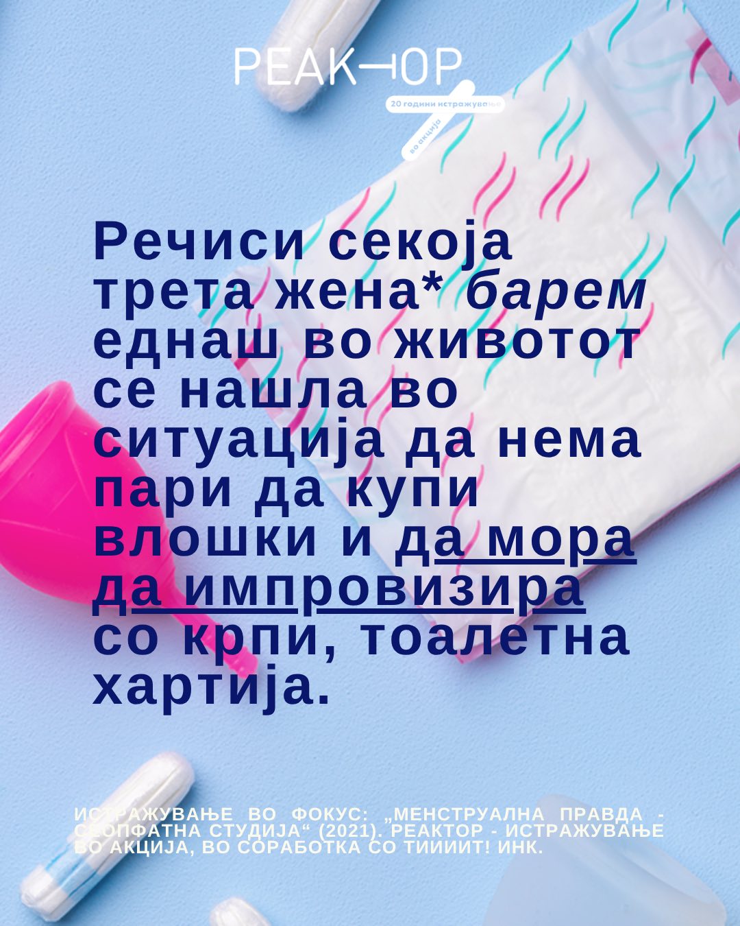 Менструалната сиромаштија останува во голема мера непрепознаена во нашата држава и од страна на властите, но и од страна на самите луѓе кои менструираат.